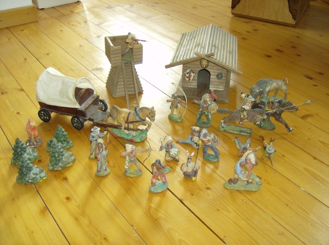 Vintage Massefiguren Indianer Cowboys Planwagen Ranch Usw Hauser Elastolin Ebay