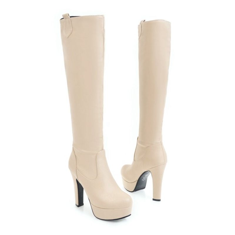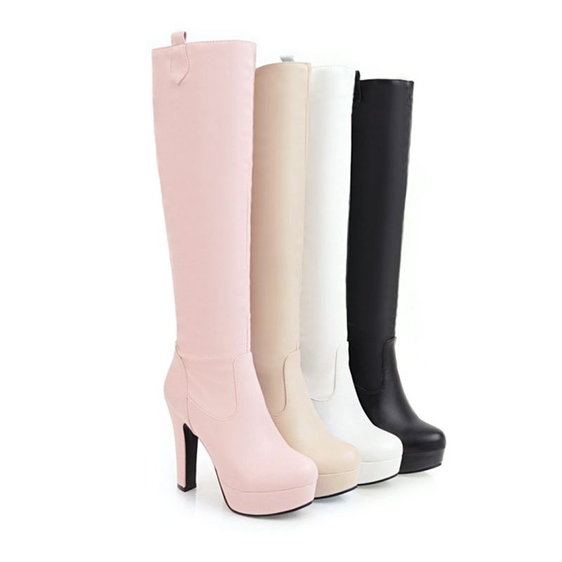 Grosshandel Mode Damenschuhe Kunstleder High Heel Runde Spitze Knie Stiefel B625 Uns Grosse 4 10 5 Schwarz Rosa Beige Von Wholesale0086 25 47 Auf De Dhgate Com Dhgate